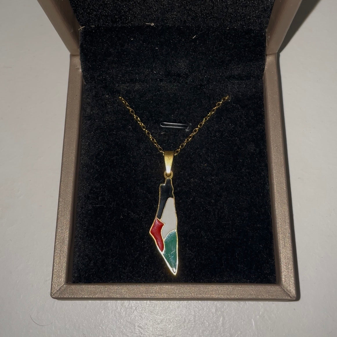 Bær et symbol på stolthed og solidaritet med vores eksklusive Palæstina smykke. Det elegante design kombinerer tidløs skønhed med dyb betydning, og gør det til et unikt statement for dem, der står med hjertet på rette sted.